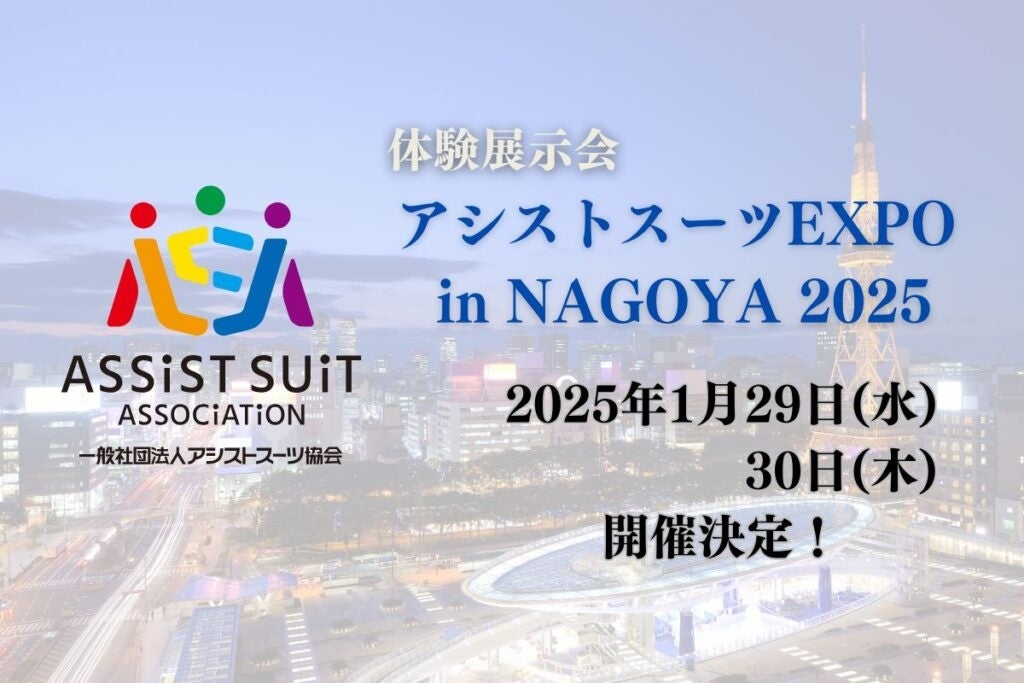 一般社団法人アシストスーツ協会は、2025年1月29日(水)・30日(木)に「アシストスーツEXPO in NAGOYA 2025」を名古屋で開催します。9社の最新アシストスーツを比較・体験できる本イベントでは、腰痛リスク評価に関する講演や導入プロセスの事例紹介も実施されます。